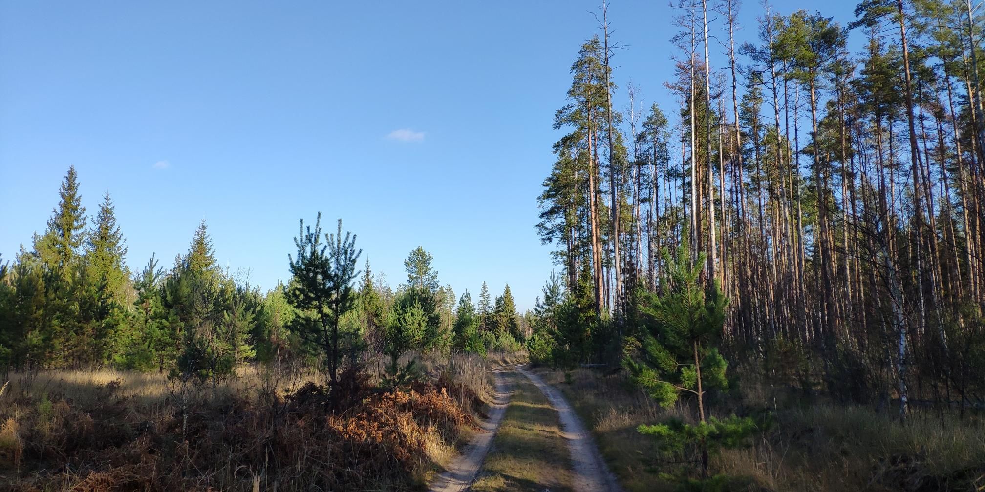 В 9.35 стартанули. Чем удобно от Войново, что прям со станции начинаешь по лесу. Песок сырой и слежавшийся, накат отличный.