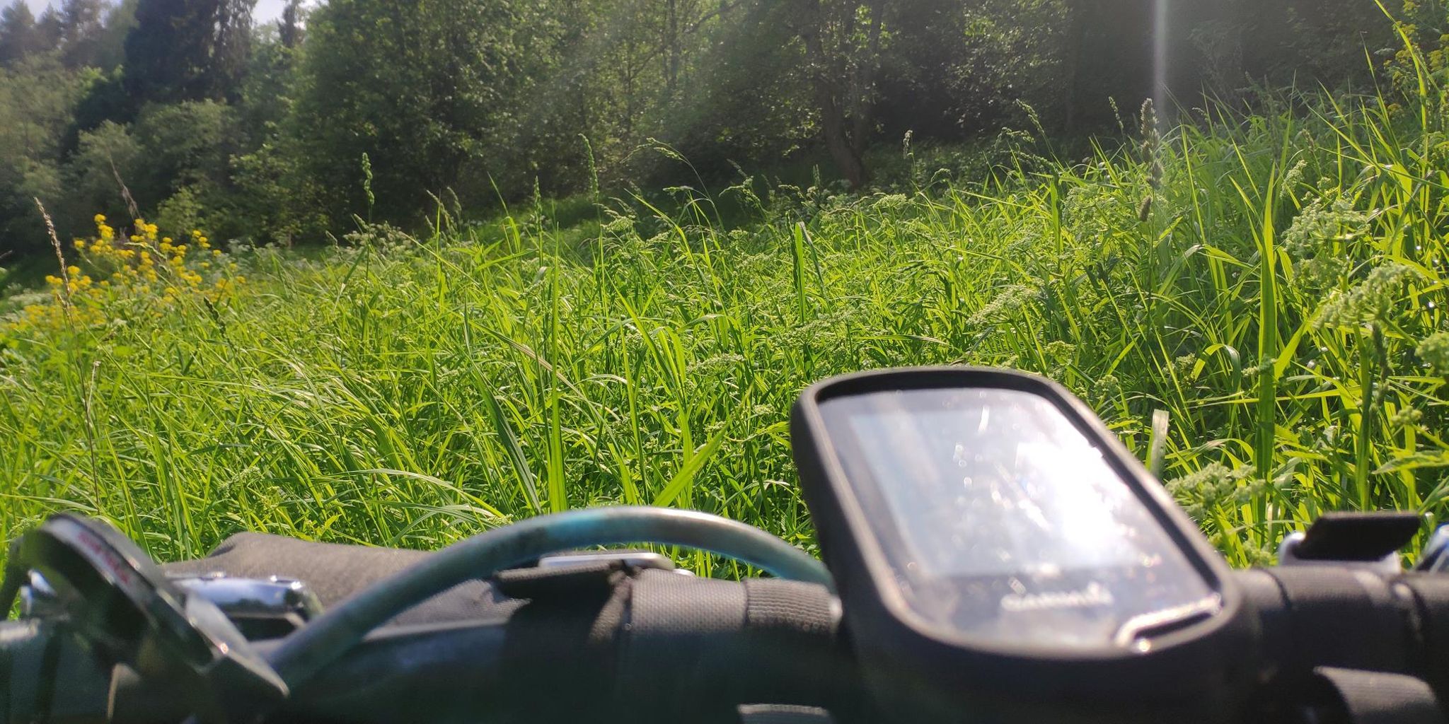 Пробираюсь сквозь заросли в подъем от реки, порядка 100 метров и выхожу на лесной сингл трейл.