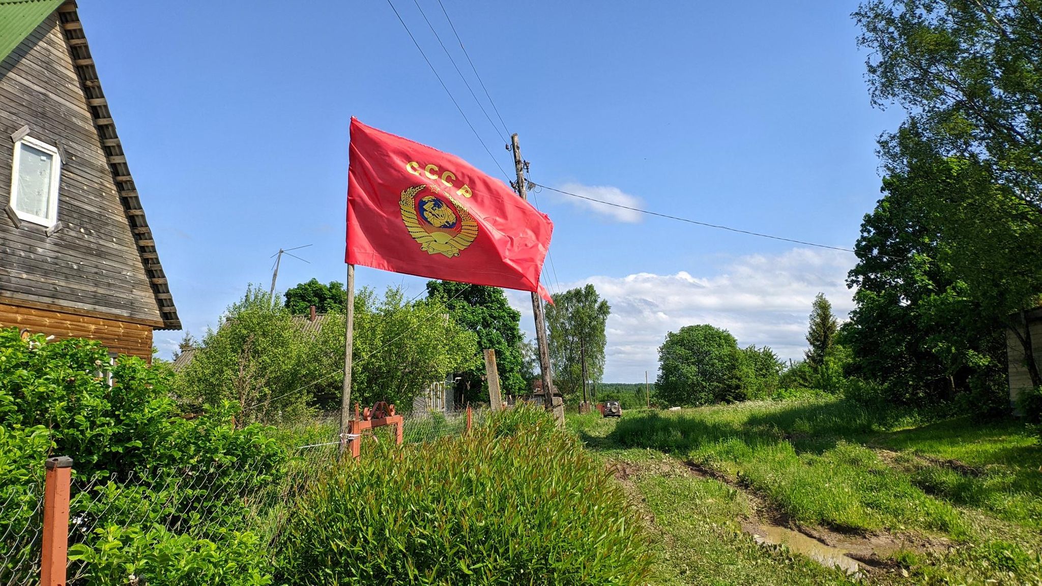 После брода АДвенча выводит меня в деревню СССР :-) доносится музыка советских времен Кобзон... У каждого дома развивается советское знамя! (есть фото) Власть советам. Землю крестьянам. Дороги не нужны.